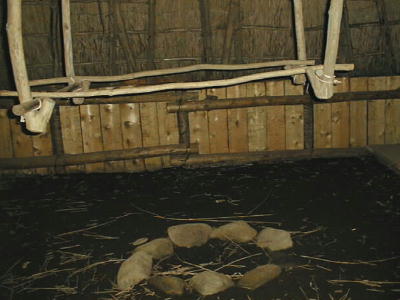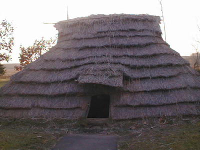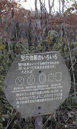 の竪穴式住居跡がどこまでも延々と続いていた場所で、そのうちの一部が復元され展示されている。