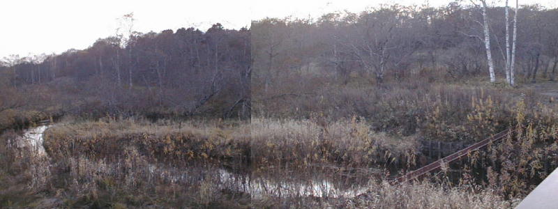 ら、湿原に架けられた木橋を渡って史跡までいって、また戻ってくるのに小一時間はかかるだろう。下左の写真で左に見え