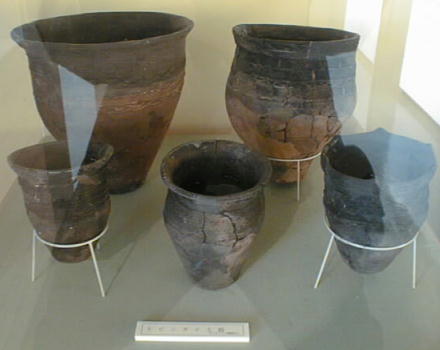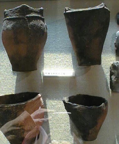 ■豊かな北方の森林や河川に鳥獣や川魚を追って生活していた擦文文化人は、朝顔形の口縁にヘラで描いた文様を施す独自