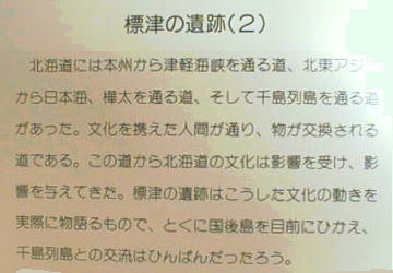 多数の文化が栄えたこの遺跡は、13世紀頃からのアイヌ文化の拠点地ともなった。標津は北海道を往来した民族文化を一挙