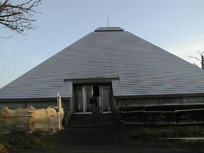 ている三角錐の建物が資料館。普段は誰も来ないのか、我々が入園圏を買った時窓口にいた女の子が、走って電気を点けに
