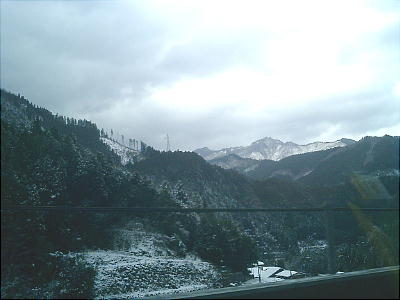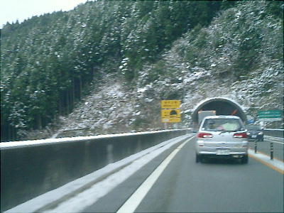 この日はすこぶる寒く、徳山道から高知道へ入って山間部に差し掛かると雪が降っていた。宮崎君はチェーンを持ってきて