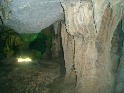 洞内の奇観には感心する。この洞窟の形成期間は1億7千年との事だが、その経過は想像も出来ない。洞窟の所々に、オバ