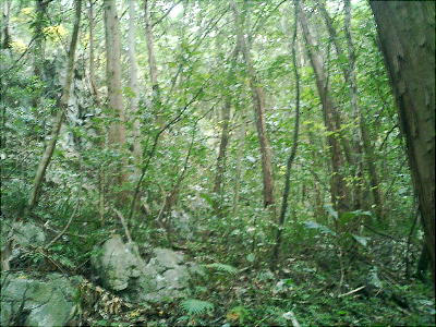 上が龍河洞の上部。この下に鍾乳洞が延々4kmに渡って続いている。(現在歩いて見れるのは、入り口から1kmほどのみ。)