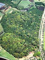 墳は「陵墓参考地」に指定され、宮内庁の管轄下に置かれており一般人が立ち入ることはできない、うっそうとした森である。