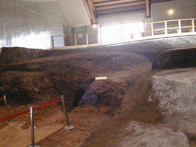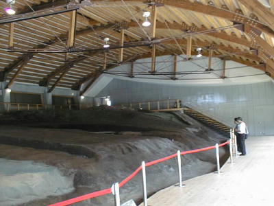 発掘された古墳の幾つかを、出土時のままに保存してある。上から覆いをかけて雨露をしのぎ、保存剤で固めていつでも見学
