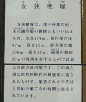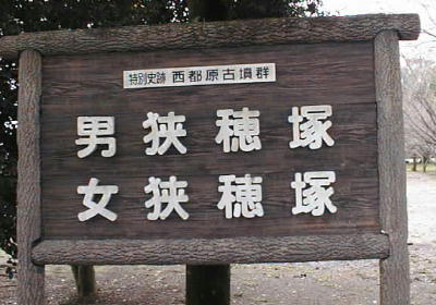 ハナノサクヤヒメ)の墓と言われる、同じく前方後円墳、女狭穂塚(めさほづか:全長174m)である。現在この二つの古