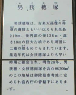 いるが、私は女狭穂塚古墳と同じ前方後円墳のような気がする。しかしそうすると、女狭穂塚古墳の築造時に男狭穂塚古墳の