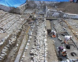 代に築かれた当初は、すべて砂岩敷きだった可能性が高くなった。また、小判形のわきからは平安時代前期(九世
