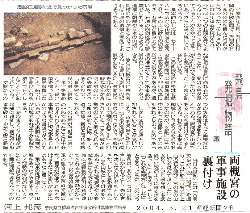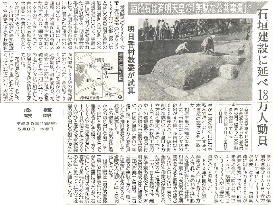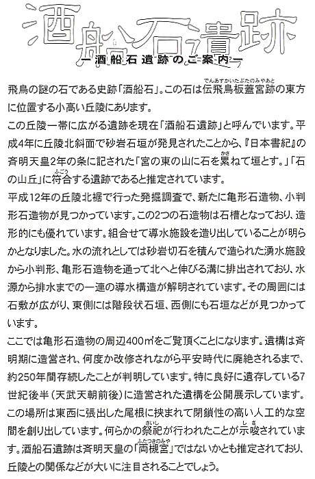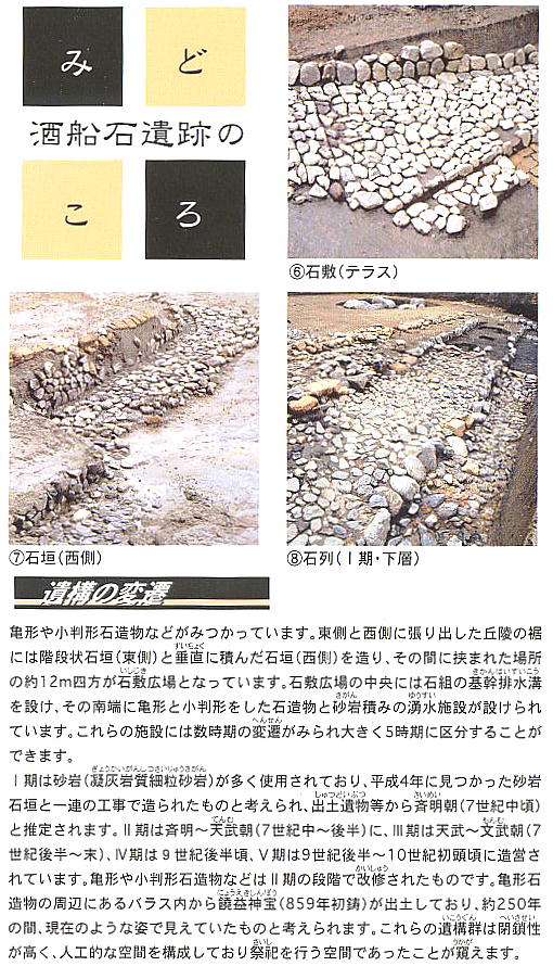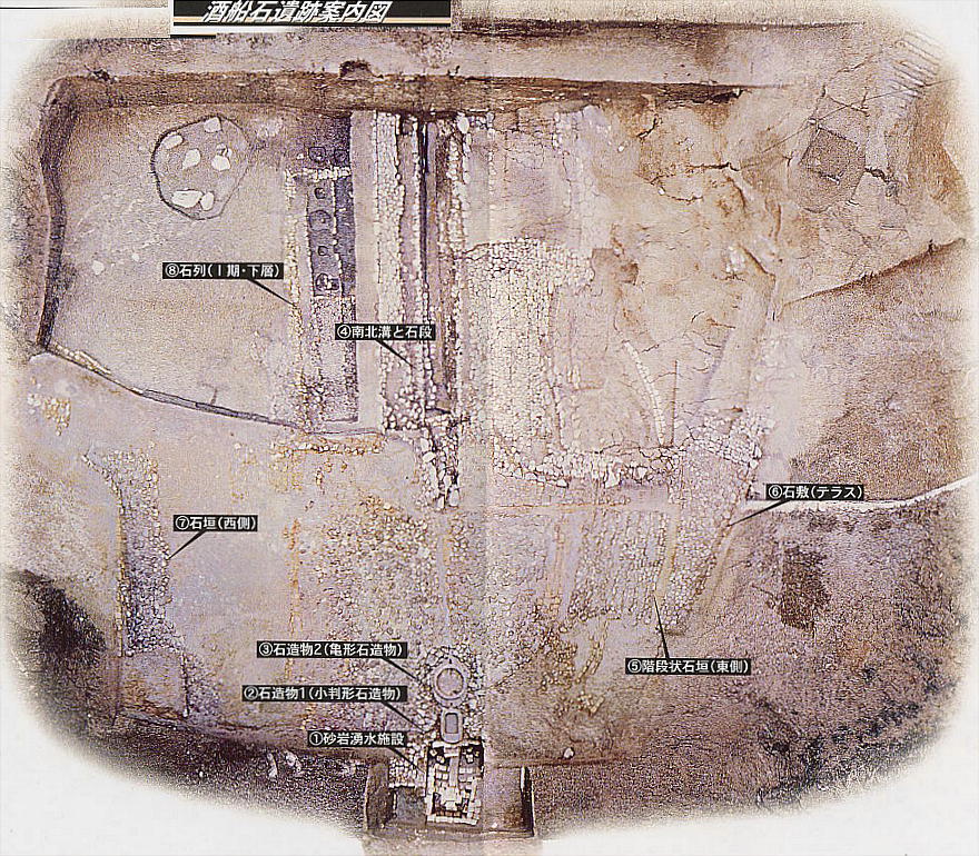 考えられている。酒船石遺跡では、総延長 700メートル以上の石垣が村教委の調査で見つかり、日本書紀に記さ