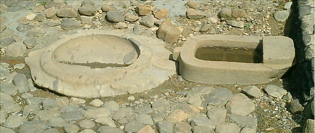 水を上げ、溝付きの石と、その二・五メートル北側にある小判形石造物の間に木製の樋(とい)を渡すなどして水