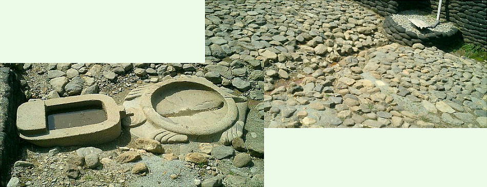 ンチ。南側のつくり出し部分に湧水をためるものを置き、貯水槽に水を導くようになっている。一方の亀形石像物