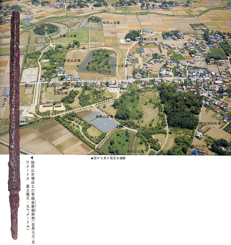 の大型古墳が群集し、国指定の史跡となっている。古墳群のひとつ稲荷山古墳からは、115文字が刻まれた「金錯銘鉄剣」が出