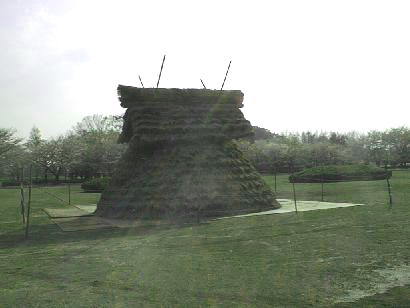 現在前方部分を復元中である。下から見ると立派な前方後円墳である。