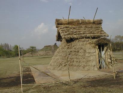 古墳公園は桜が満開であった。広場には復元された竪穴式住居も建っている。ここにあったのかどうかは定かでない。