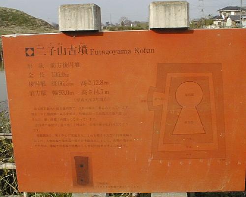 前方後円墳なのだが、円墳が二つくっついたような形から二子山(ふたごやま)と呼ばれている。