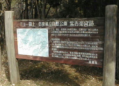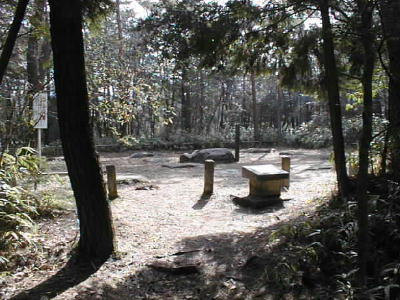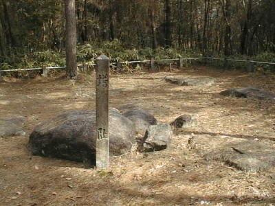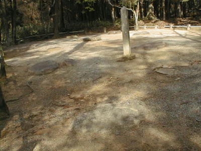 入る。「紫香楽宮跡」の表示の通りに行けばよい。紫香楽宮跡と刻まれた石塔がある所で、10mばかり森の中に入ると小さな広場が