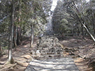広場から参道を登ると、程なく中門への石段が見えてくる。10数段の石段を登るとそこが国指定史跡「紫香楽宮跡」である。