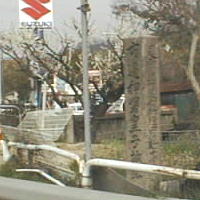 石碑。こんなところに一体なんでと思ったが、一瞬だったのではっきり何の跡なのかわからなかった。車を止めて見たかったが、前後