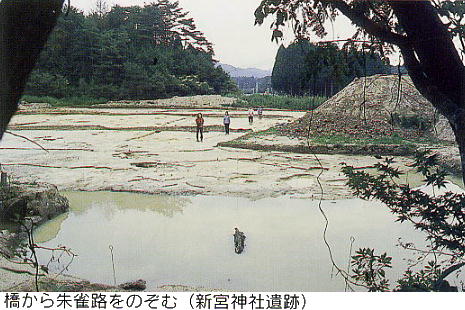 紫香楽宮の南側には朱雀門があり、南に延びるメーンストリート朱雀路が整備されていた。滋賀県文化財保護協会の畑中英二主任技師(考古学)は「朱雀路周辺に市が立ち、役人や大仏造りの職人でにぎわったと続日本紀に書かれており、往時がしのばれる」と話した。(2000/11/23)