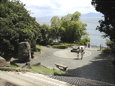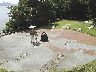 の詩碑もある。さらに数段上ると、地面に当時の東アジアの国々を示した世界地図があり(方位広場と呼ぶらしい)、