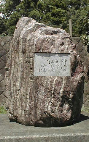 のレプリカを埋め込んだ記念碑が中央にあり、福岡の地と関係の深かった中国の古代史家で文学者でもあった郭沫若