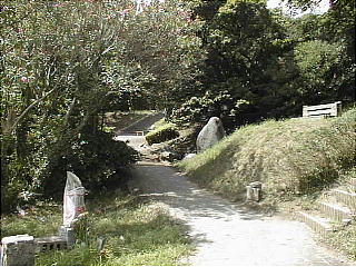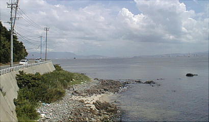 志賀島へ渡るとすぐ左右に道が分かれているが、夏の間は海水浴客で混雑するため右廻りの一方通行である。もっと