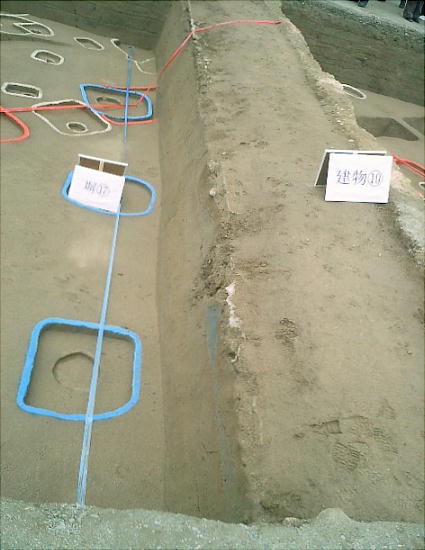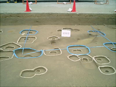 また、一辺と深さが2メートル近い四角い穴の一部が2カ所で見つかった。それぞれ直径約30センチ、高さ