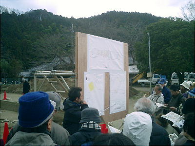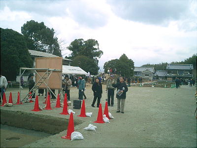 今回は、昨年の発掘場所の両側を掘っていたのだ。現地説明会も、前回の続編ということになる。明日香村教育委員