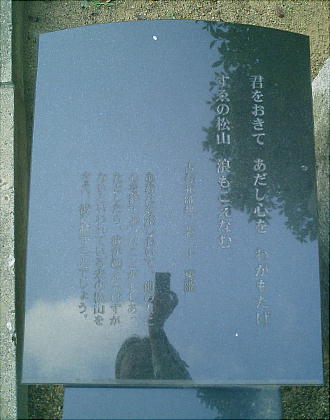 江戸初期に発見され、大昔からの歌枕として有名で、千年の記念碑との対面に芭蕉も涙したと言われる。碑文は、前半には