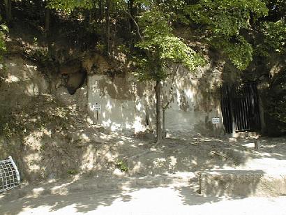 資料館の前の道を約10分ほど、ぶどう畑の中を行くと、どでかい石槨に着く。こんなものを作らせるとは相当の権力者がいたのだろう。