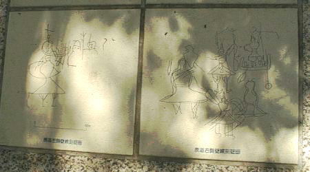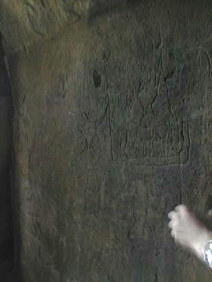 この横穴群を一躍有名にした船・人物の線刻画。下はその実物。この線刻画は大正6年(1917)に発見され、「ゴンドラ形