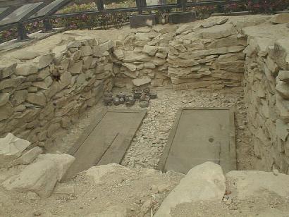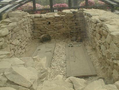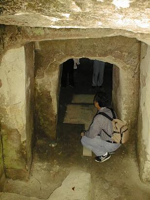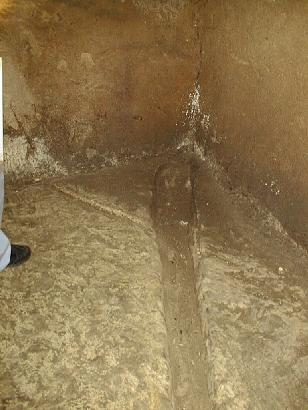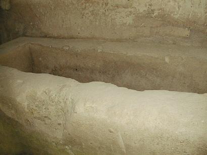 下右は造り付け石棺。高井田横穴群では19基確認されている。石棺は普通よそで作ったものを古墳に入れるが、ここでは床