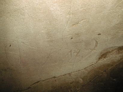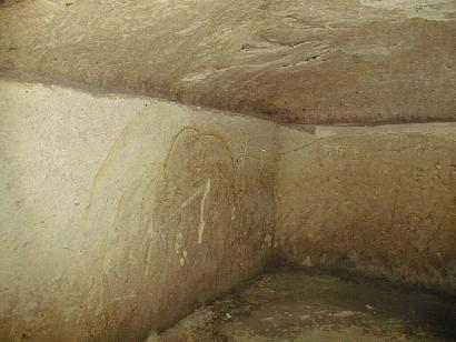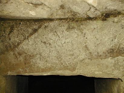 玄室入り口の正面や左右の壁にも線刻画がある。後世のいたずら書きも多い。