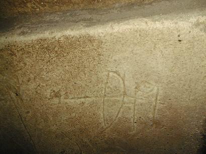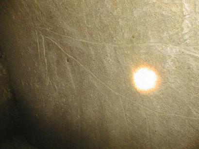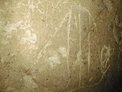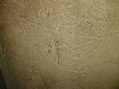線刻画は先の鋭い釘やナイフのようなもので壁に絵や記号を描いたものである。人物や船、家、木、鳥、武器等の他、円や