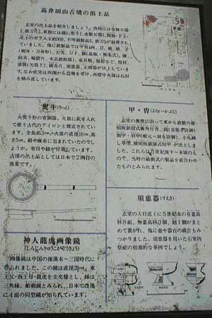 品(画像鏡、熨斗(うっと:ひのしとも言う。古代のアイロン:全国でも数例しか出土していない。)鎧・甲、須恵器等)