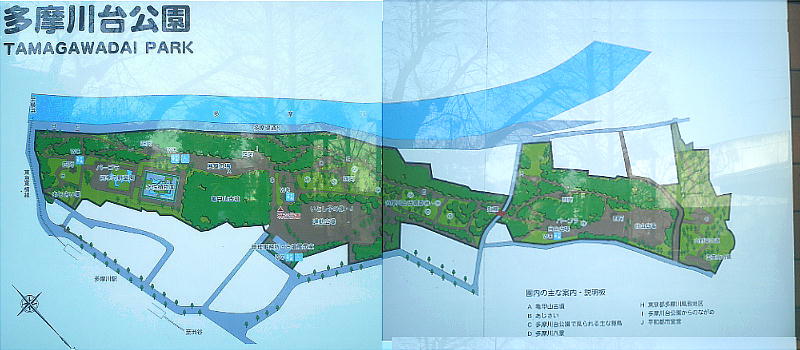 う、近在では唯一の緑地帯で、公園内を歩いていると野鳥のさえずりも多く気分も落ち着く。木々の間からは雄大な多摩川の