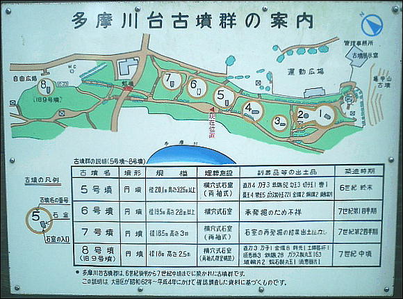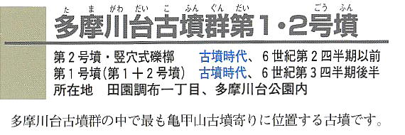築造している。住宅街の中を抜けて坂道を登った所に「多摩川台公園」がある。ここにずらりと古墳が並ぶ。公園の入り口右