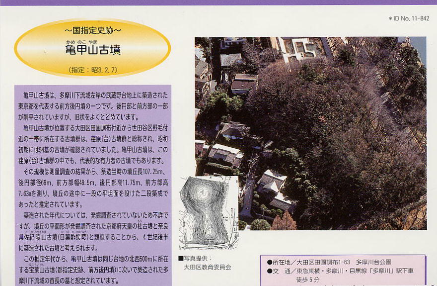 る。現在は多摩川台公園として整備されているが、高級住宅街の背後、多摩川北岸の丘陵地帯に、全長100米級の前方後