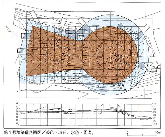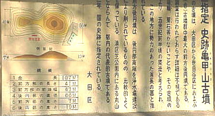 和9年に工事のため「前方部」が削られて現在は「後円」の部分しか残っていない。公園内には国史蹟の亀甲山古墳や、1