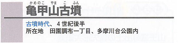 多摩川台公園にある亀甲山古墳は、大田区から世田谷区にかけて多摩川左岸に集中する荏原台古墳群中最大の前方後円墳で、