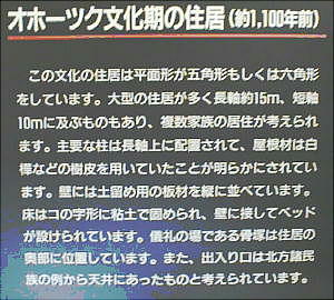 ている。この文化の起源、社会生活、民族については不明な点が多く、謎の民族とされている。この常呂遺跡では、この文