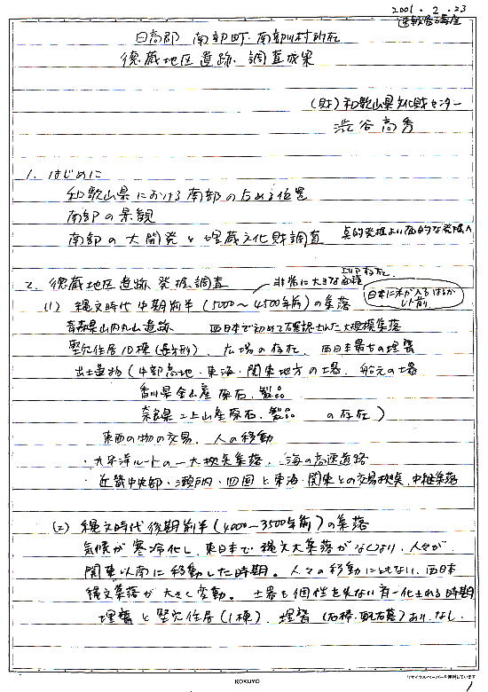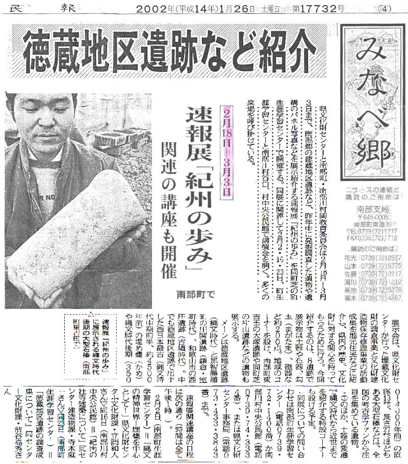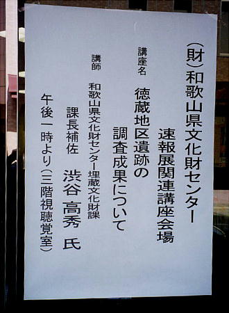 和歌山県の徳蔵遺跡(とくぞういせき)講演会の案内を河原さんが持ってきた。新聞で見てこの遺跡のことは知っていたの