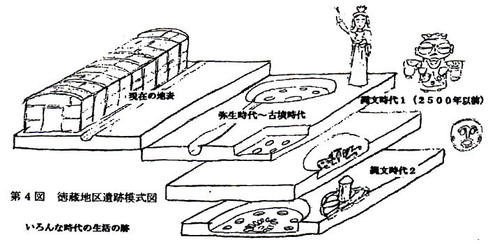 徳蔵地区遺跡は、縄文時代のみならず、弥生時代、古墳時代と各時代の遺跡が次から次へと発掘され、考古学研究の宝庫と