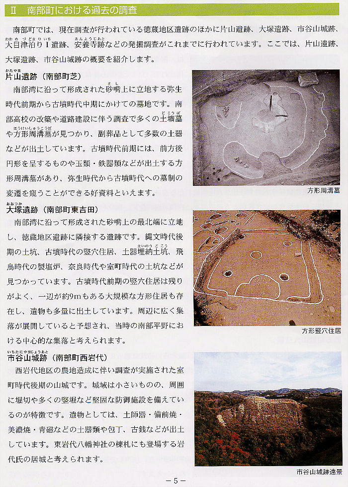 が平成9年度から実施し、各時代にわたる考古学的な成果を得てきた。遺跡の分布は、縄文時代を初めとして各時代におよ