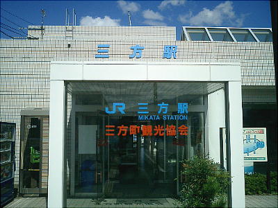 JR小浜線の「三方駅」。駅前には福井県出身の歌手「五木ひろし」が寄贈した石碑が据えられている。