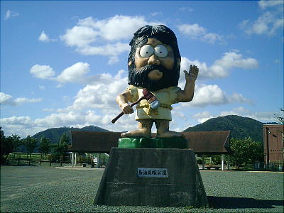 記念碑のそばにはでっかい縄文人の像がたっていて、「ここが遺跡だぞー」と教えている。