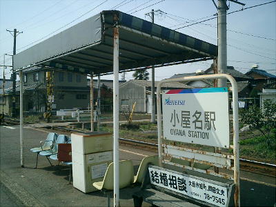 名古屋から名鉄特急で「新岐阜」まで行き、そこで単線のワンマンカーに乗り換えて「新関駅」の手前「小屋名」で降りる。