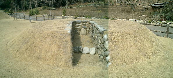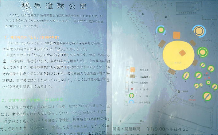 されている。園内には縄文時代の建物跡に復元建物が建ち、古墳時代後期の古墳が復元してある。資料館で貰った説明書によ