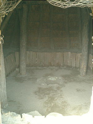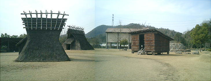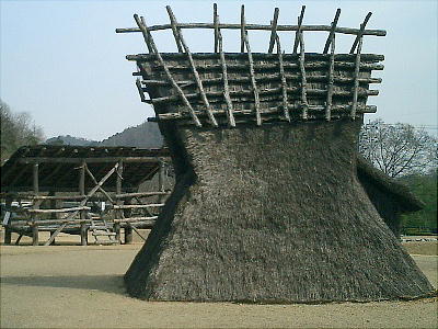 場・土器捨場などが復元されている。常時30人ぐらいで生活していたようである。広場の中央にある竪穴住居はひときわ